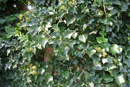 Auch der Efeu beim Kompost steht in voller Blüte. Hier tummeln sich Fliegen, Bienen und Wespen. Ob der Paprika noch reif wird ist abzuwarten.