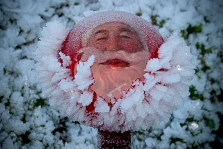 Kalt ist es geworden im Alpingarten. Da gefriert sogar der Bart des Weihnachtsmanns. Der hält sich gerne hier auf, weil er nichts zu tun hat. Denn der Nikolaus ist der Liebling der Kinder in unserer Region.
