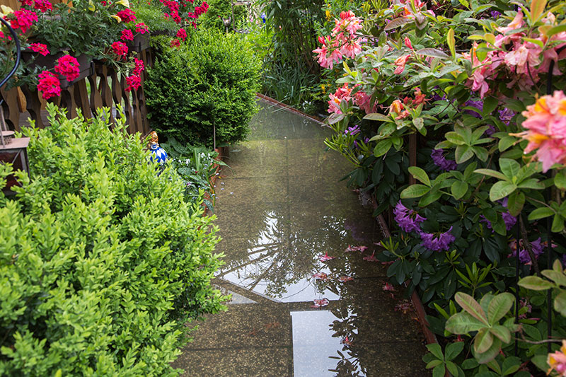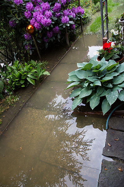 In den vergangenen Tagen hat es etwa 200 Liter pro Quadratmeter geregnet. Diese Menge regnet es normalerweise in 4-6 Monaten. Jetzt steht der Alpingarten unter Wasser. Zum Glück ist das Gartenhaus weit genug vom Boden weg und trocken. Aber der Garten ist die nächsten Tage nicht begehbar. Mal sehen, was die Wühlmäuse machen.
