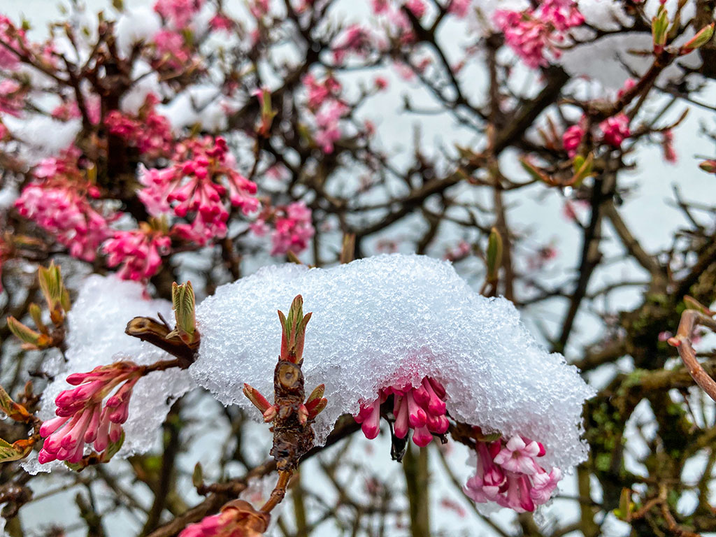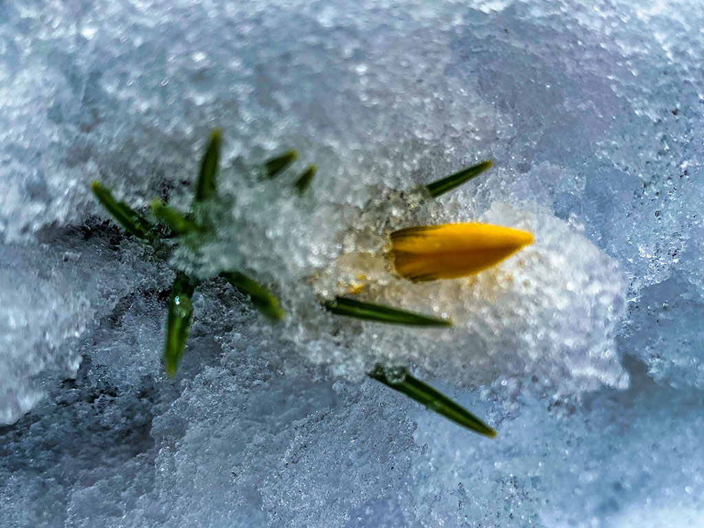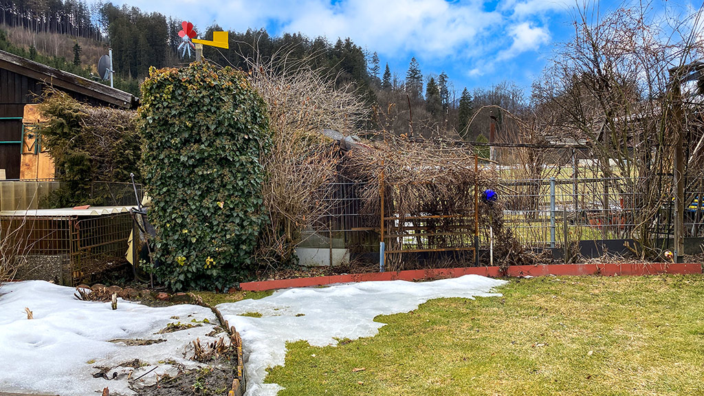 Es ist der 3. März 2021. Heute bekommt der Alpingarten wieder eine Ladung Saharastaub ab. Dadurch verändern sich Luft und Licht. Der letzte Schnee schmilzt. Aber der Boden ist noch weitgehend gefroren. Doch verschiedene Meisen suchen schon nach Nistmöglichkeiten. Ich habe zwei Nistkästen. Mal sehen, ob sie dieses Jahr damit zufrieden sein werden.