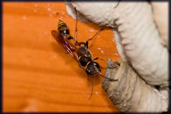 Die Wespe ist harmlos und sollte nicht bekämpft werden.