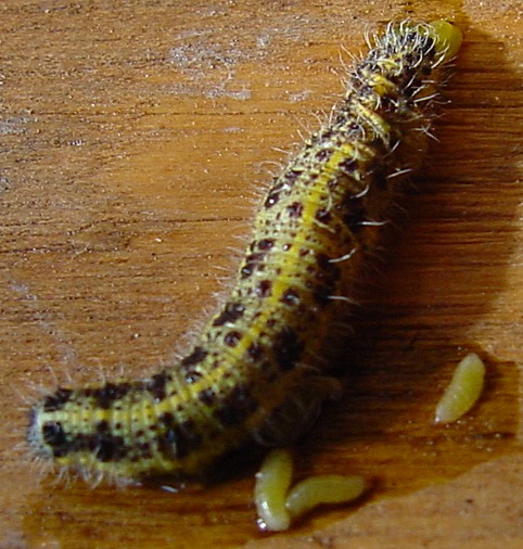 Schlupfwespen - die Harmlosen - legen ihre Eier in Raupen ab. Hier sieht man die Larven schlüpfen. Die Raupe ist dabei ums Leben gekommen.