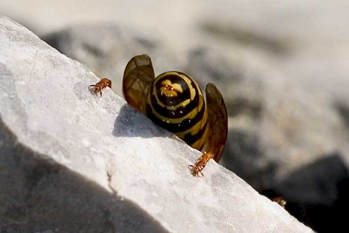 - Tötet man eine Wespe in der Nähe des Nestes, wird eine Substand freigesetzt, die andere Wespen herbeiruft. Die Üben dann Rache.