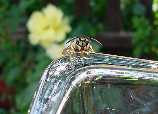 Die Wespe fliegt so lange zum Krug, bis sie hineinfällt.